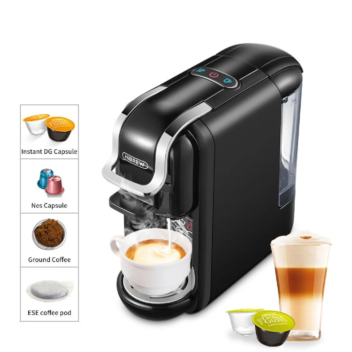 4 en 1 Cafetière Expresso à Capsules Hibrew avec mousser au lait ,24.5 *24.5 *11 cm - Noir