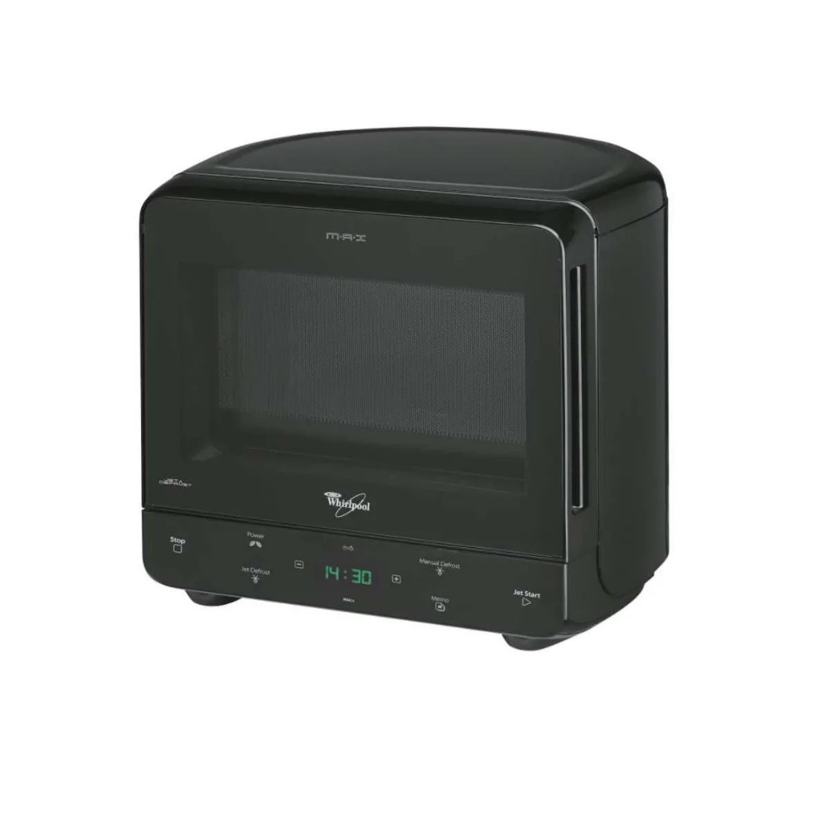 micro-ondes solo 13l 750w noir - MAX34NB - Micro-ondes Monofonction Whirlpool MAX34NB avec émission d'ondes 3D-System : grâce à ce système, les plats sont réchauffés uniformément. Mini dehors, Maxi dedans! Grâce à sa cavité arrondie, Max trouve sa place dans les cuisines les plus petites, tout en offrant un plateau de 28cm, comme un micro-ondes de 25L. JetDefrost : Pour décongeler les aliments, 7 fois plus rapidement que dans un micro-ondes traditionnel, sans départ de cuisson.