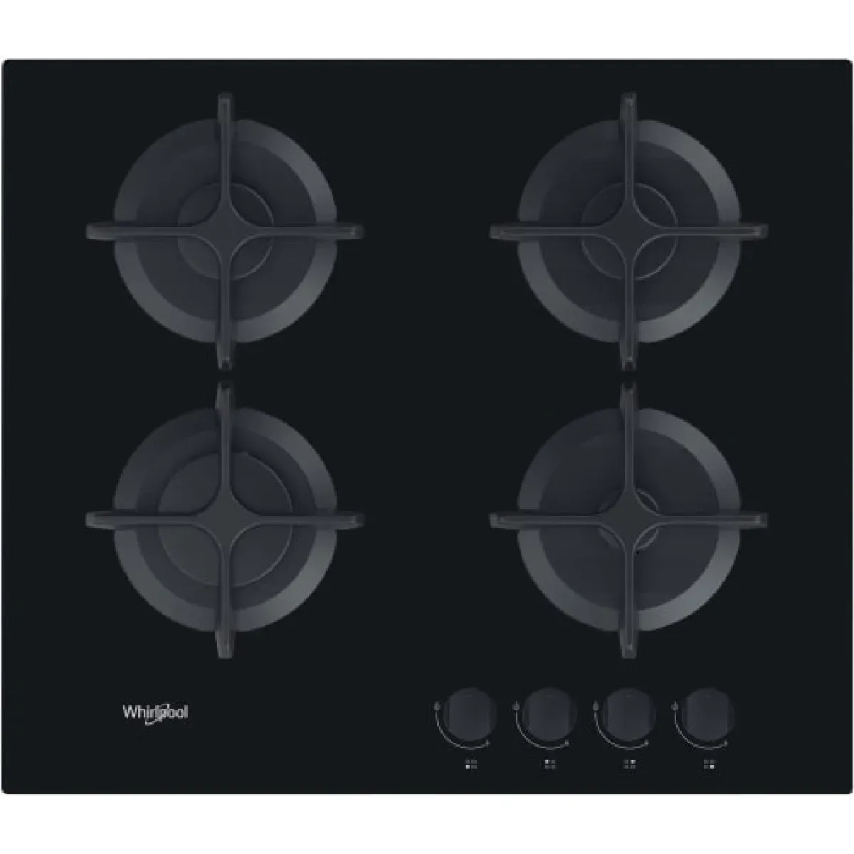 Whirlpool AKT616NB Plaque Gaz Minuterie 7300W 4 Foyers Fonte Verre Noir